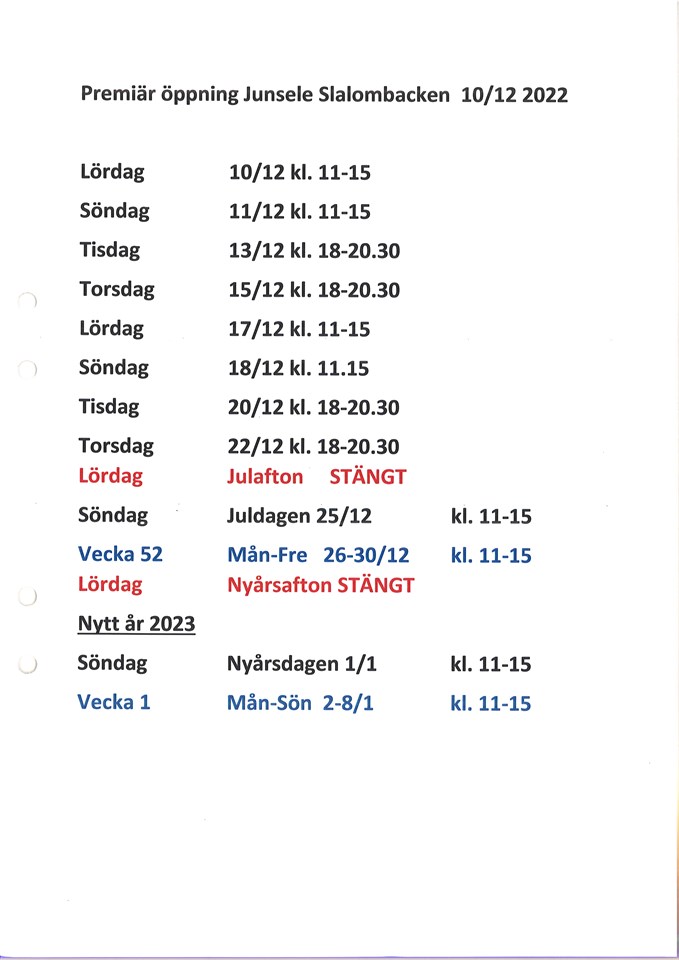 Öppettider 2022-2023 Junsele IF 6 dec 2022 0kommentarer