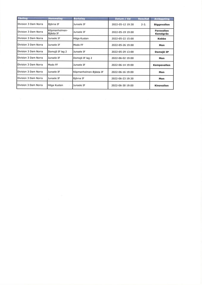 Halloj Tryckfels nisse har varit framme i senaste Västra Nytt som kom idag 18/5. Damerna spelar alla hemmamatcherna på Mon. och ingen annanstans, förutom den 22/5 är det på Kebbeplan Bortmatcherna se bifogade blad Sprid gärna detta vidare. /Anita Junsele IF 18 maj 2022 0kommentarer