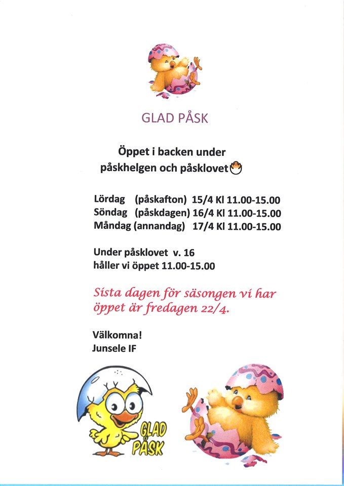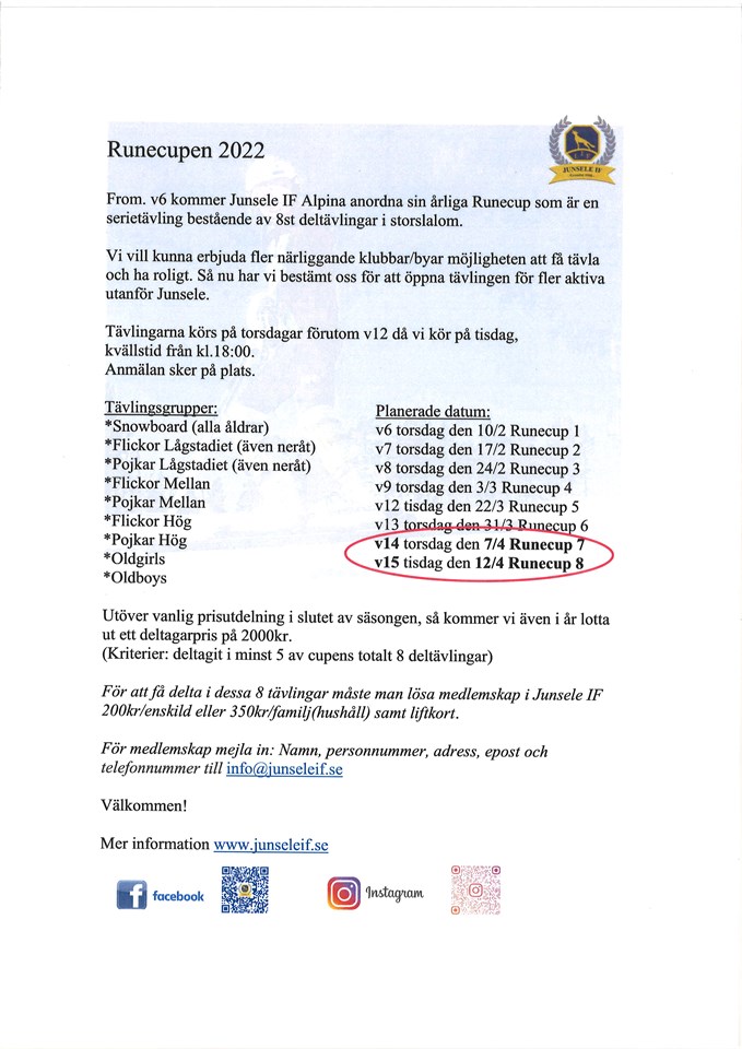 Se bifogade fil om Påsköppet i slalombacken Junsele IF 11 apr 2022 0kommentarer