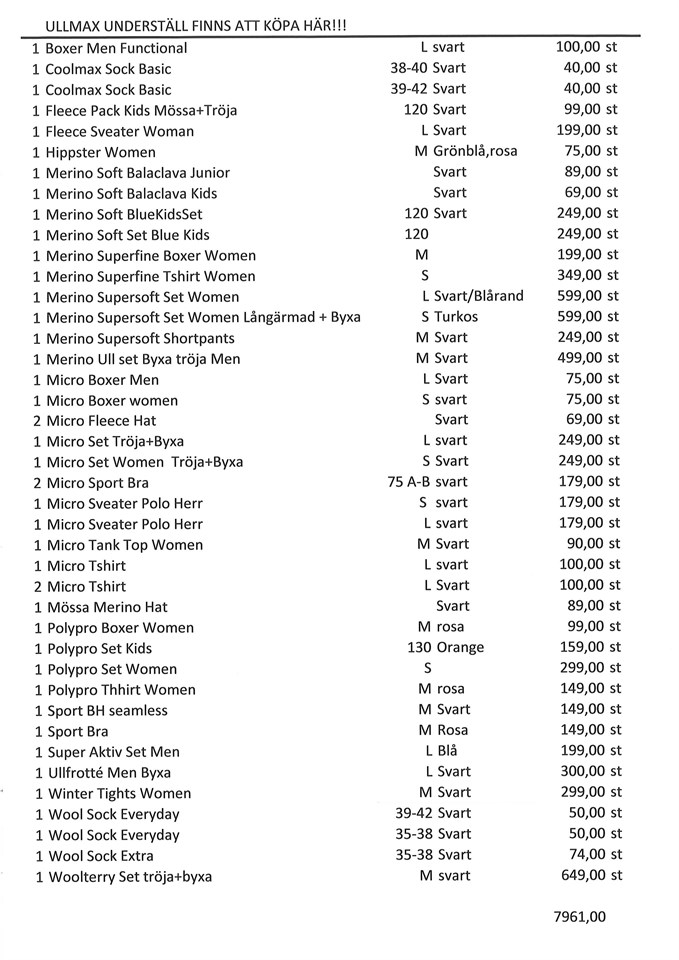 Ullmax underställ!!! Nu ska de säljas ut. bifogar lista( gå på dokument också) på Ullmax underställ som vi har på kansliet. Kom gärna in och prova. Köp med dej hem direkt. /kansliet Junsele IF 13 okt 2017 0kommentarer