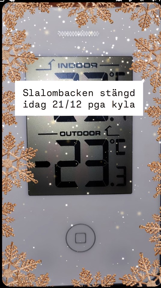 • Slalombacken stängd idag 21/12 pga kyla.
