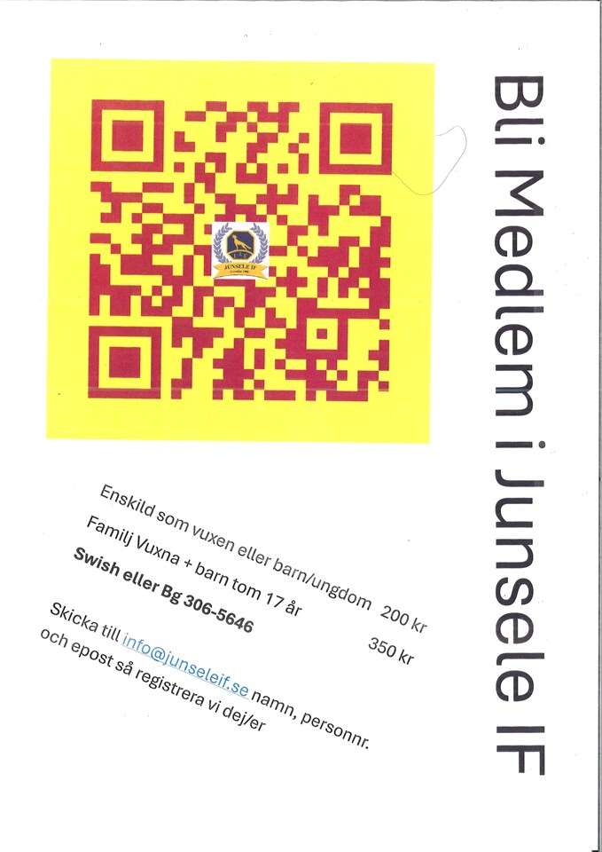 Välkommen aktiva, styrelsemedlemmar och stödmedlemmar Det går alldeles utmärkt att swish, Bg 306-5646 se bifogade plansch. Komihåg ni som bli ny medlem , att skicka epost på namn,personnr. så registrerar vi dig/er Junsele IF 15 feb 2024 0kommentarer