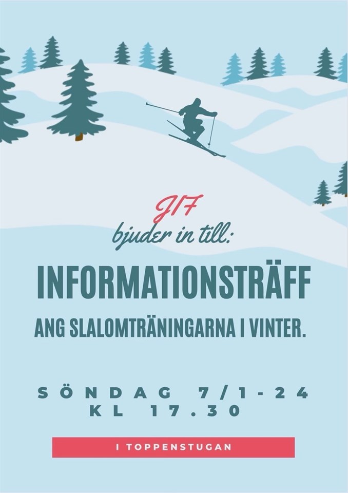 Sätt på er hjälmen och värma upp skidmusklerna! Junsele IF Alpina bjuder in till informationsträff om kommande träningar och tävlingar för vintersäsongen 2024. Datum: Söndag 7/1 Tid: 17:30 Plats: Toppenstugan Har du kompisar eller grannar med barn som är sugna på att prova på skidåkning? Bjud in dem också! Ju fler, desto roligare! Vi syns på söndag! Dä ä bar å åk! Junsele IF Alpina Junsele IF 4 jan 2024 0kommentarer
